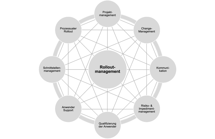 Wir führen das Rolloutmanagement als Projektteam durch – entweder eigenständig oder in enger Zusammenarbeit mit Ihrem Team - je nach Wunsch: